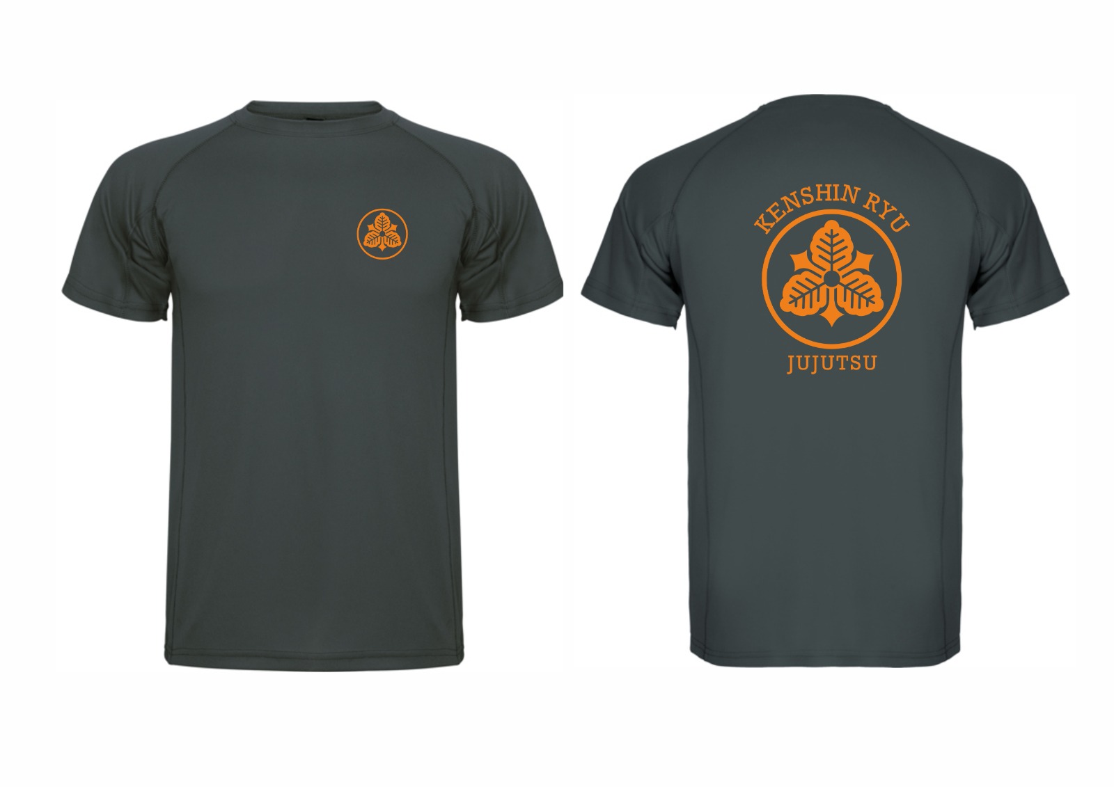 T-shirt cinza mate com símbolo laranja